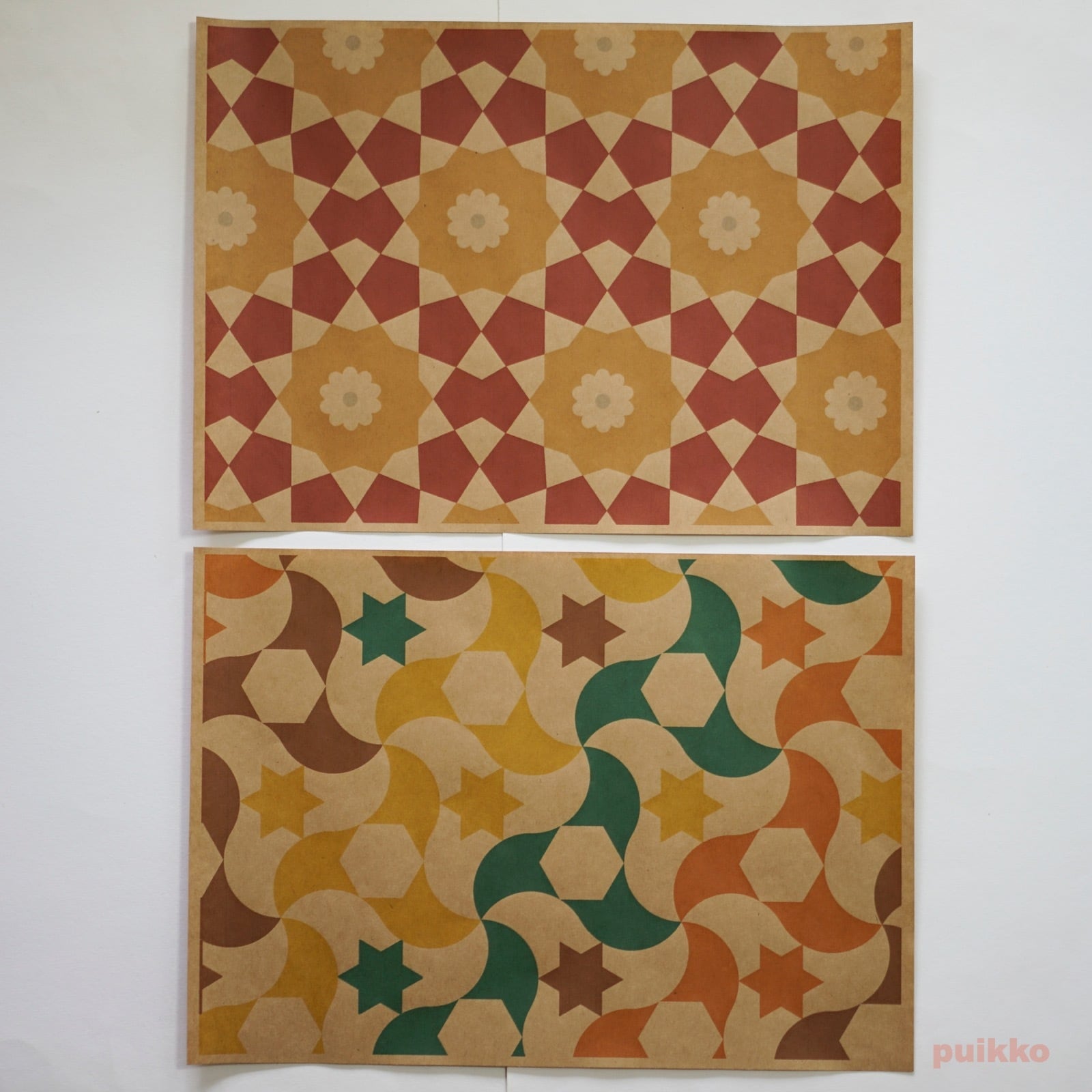イスラム教のモスクの壁面装飾などに見られる幾何学的文様アラベスクをブックカバーにしました。