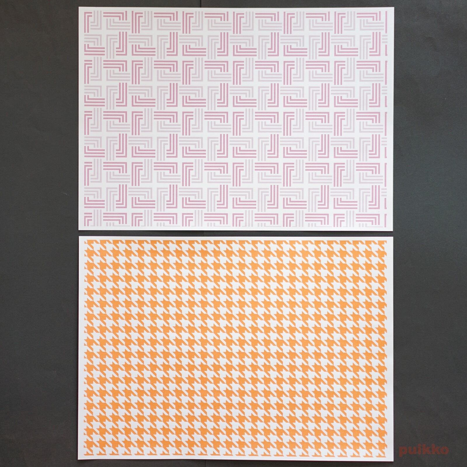 和柄でおなじみのパターン5種(六弥太格子、千鳥格子、霞、鱗文、松皮菱)をそれぞれ一面に敷き詰めました。