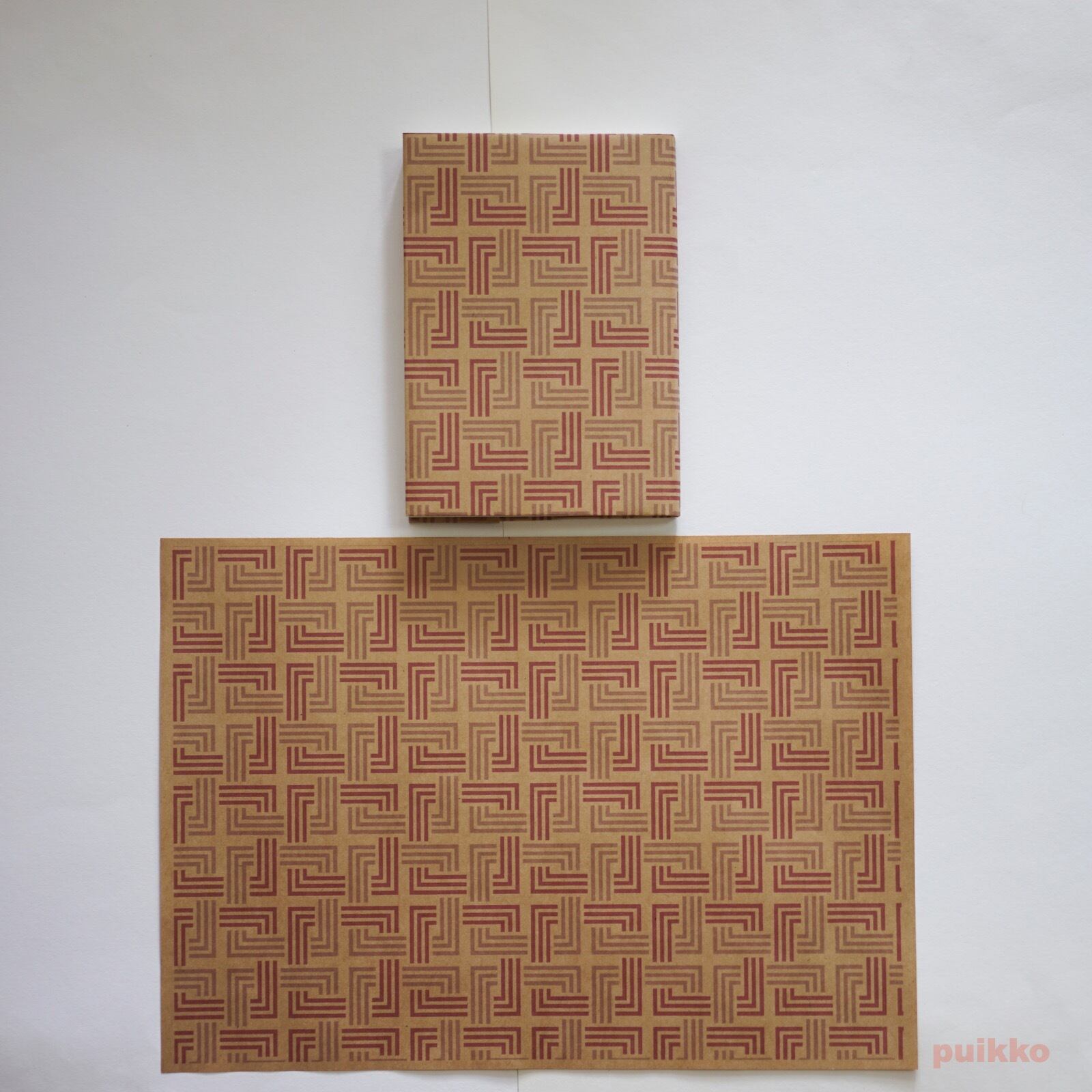 使用した用紙は再生紙(コピー紙よりやや厚く、黄味がかった白)とクラフト紙(ブラウン)の2タイプ。お好みのほうをお選びください。ブックカバーとして使うだけでなく、小物の包装紙、写真撮影の背景紙などアイデア次第でいろいろ活用できます。折らずに発送します。