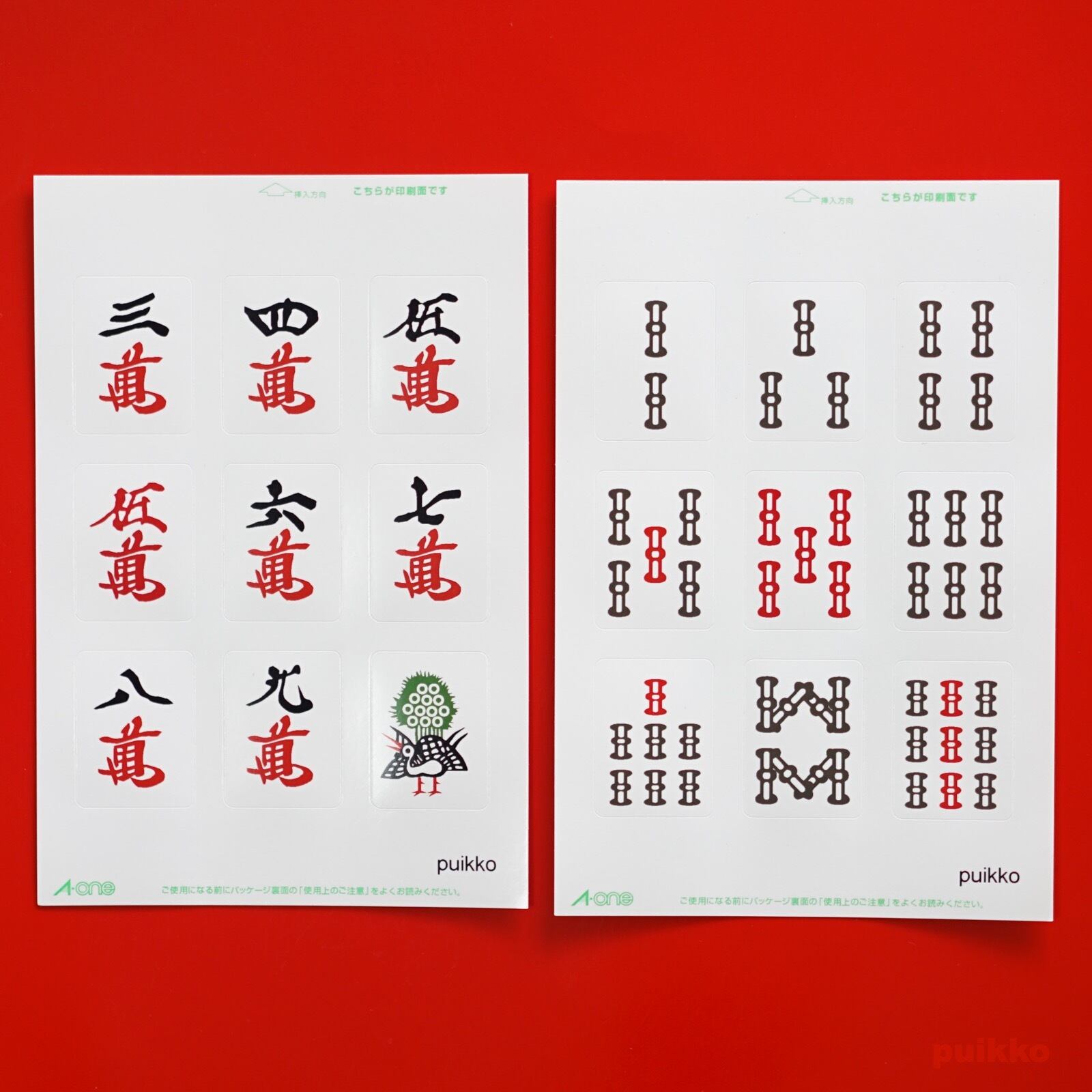 麻雀牌の絵柄をラベルシール(24×32mmの角シール)に印刷しました。