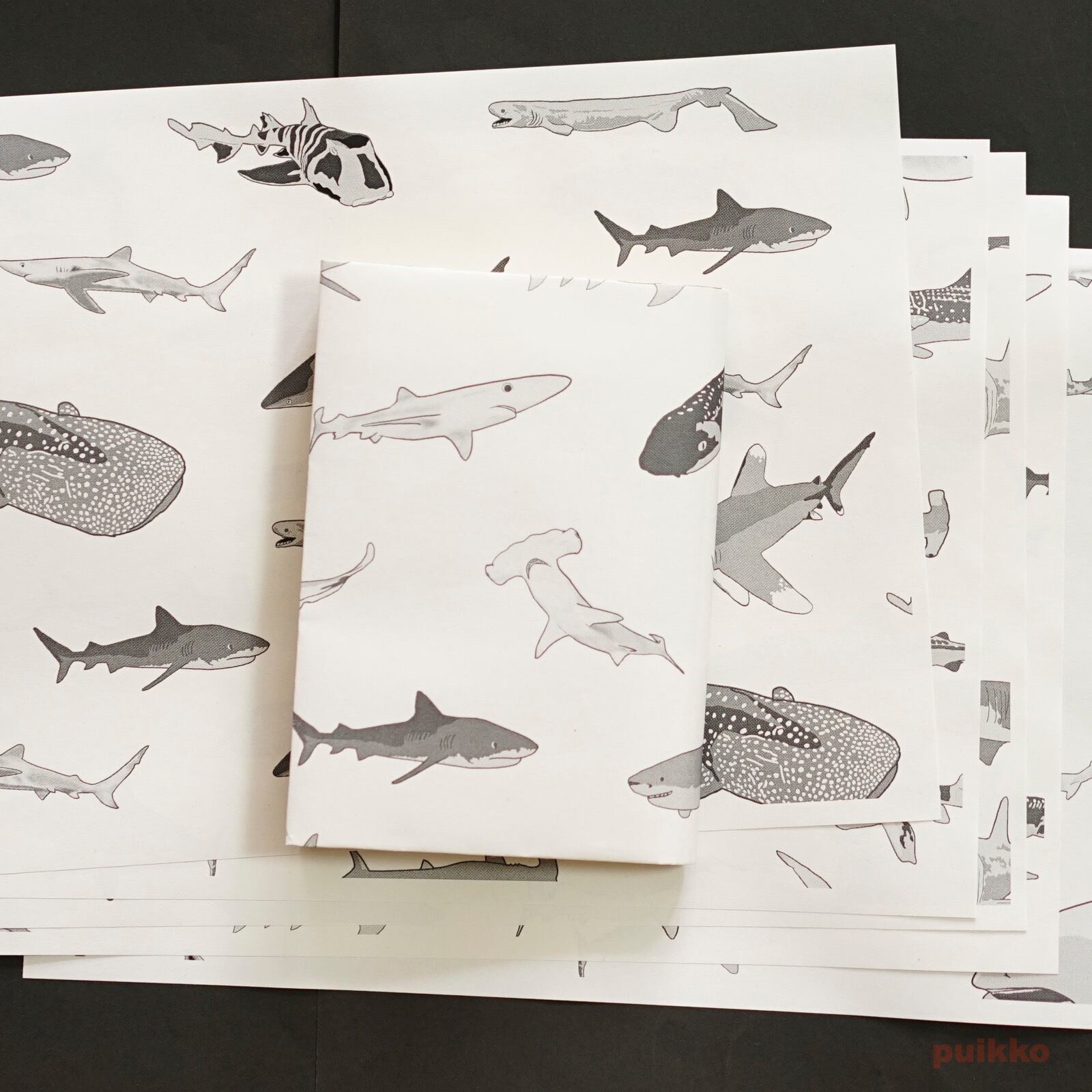 紙製ブックカバー サメ(モノクロ)(5枚セット)