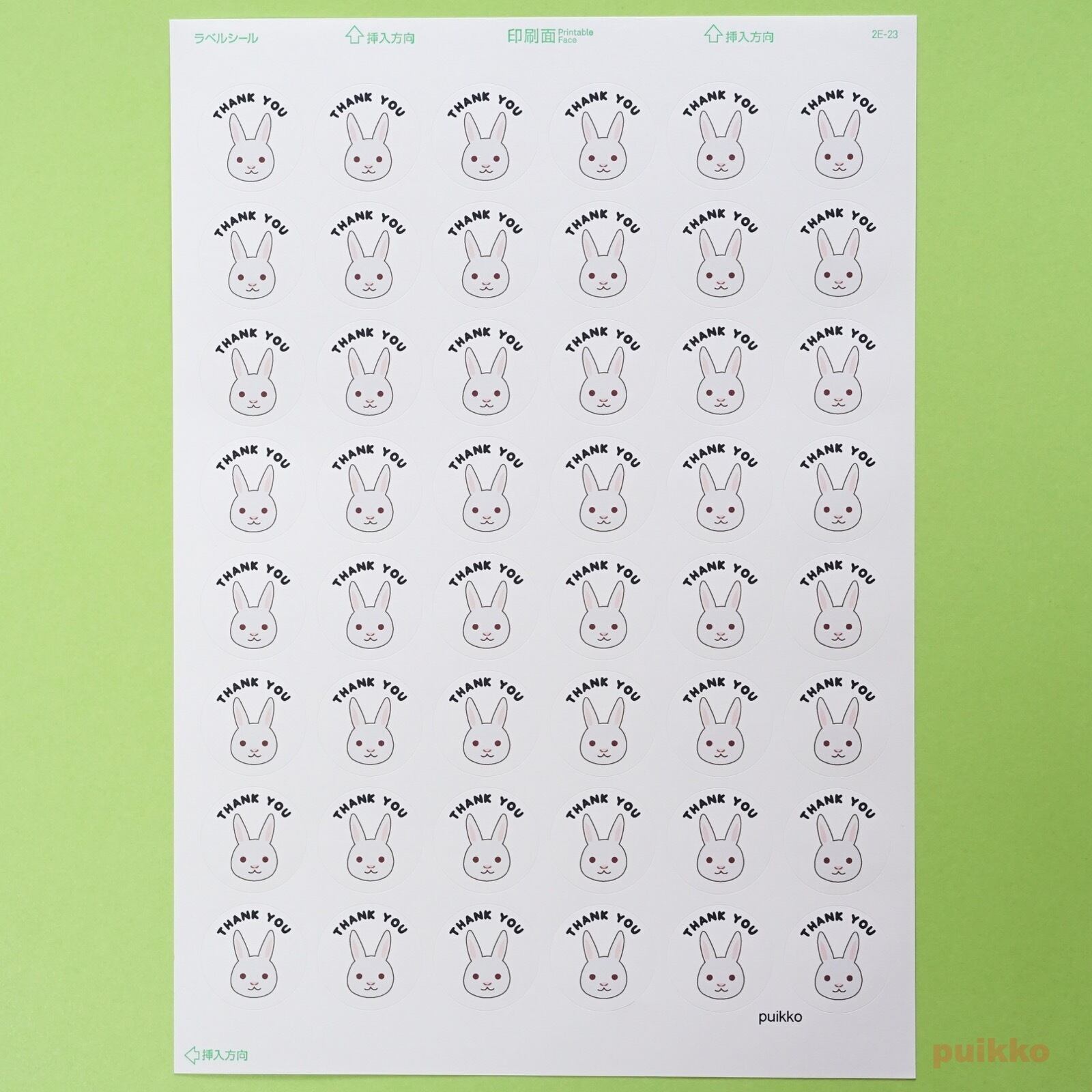 丸型のラベルシールに「THANK YOU」の文字とうさぎの顔のイラストを配置しました。