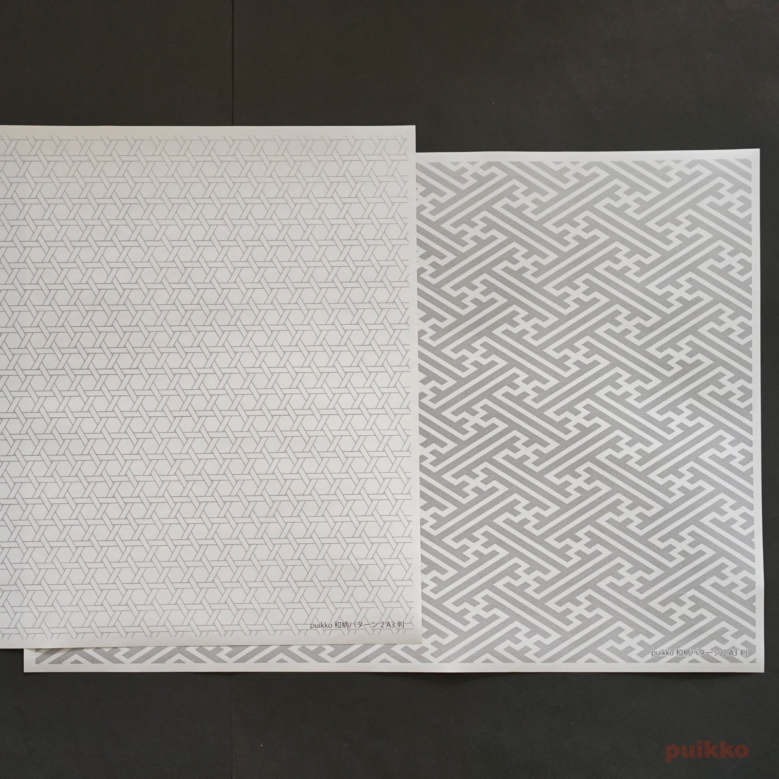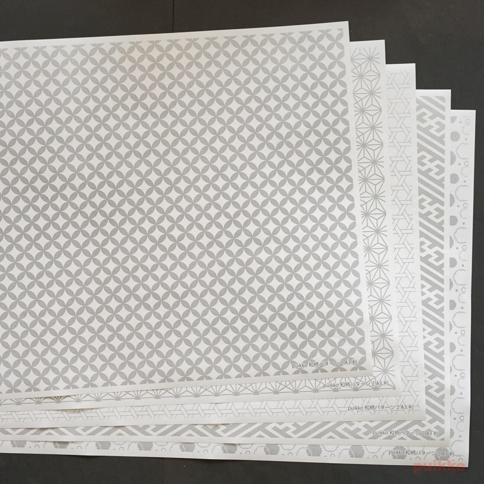 和柄でおなじみのパターン5種(七宝、麻の葉、籠目、紗綾形、雪輪)をそれぞれ一面に敷き詰めました。