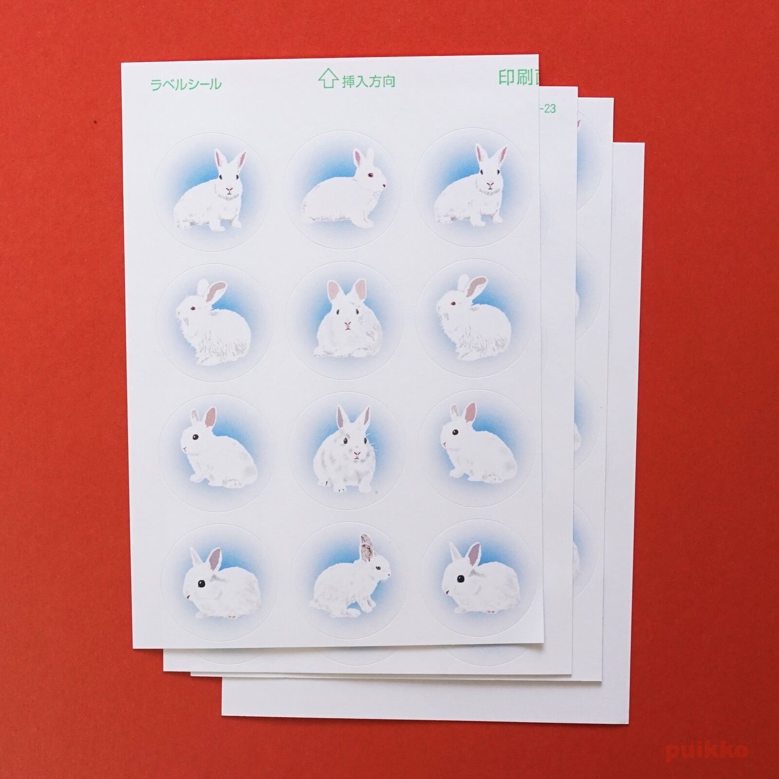 うさぎのイラストをラベルシール(直径30mmの丸シール)に印刷しました。