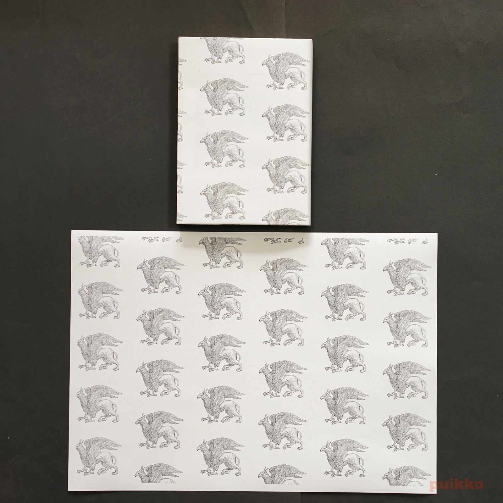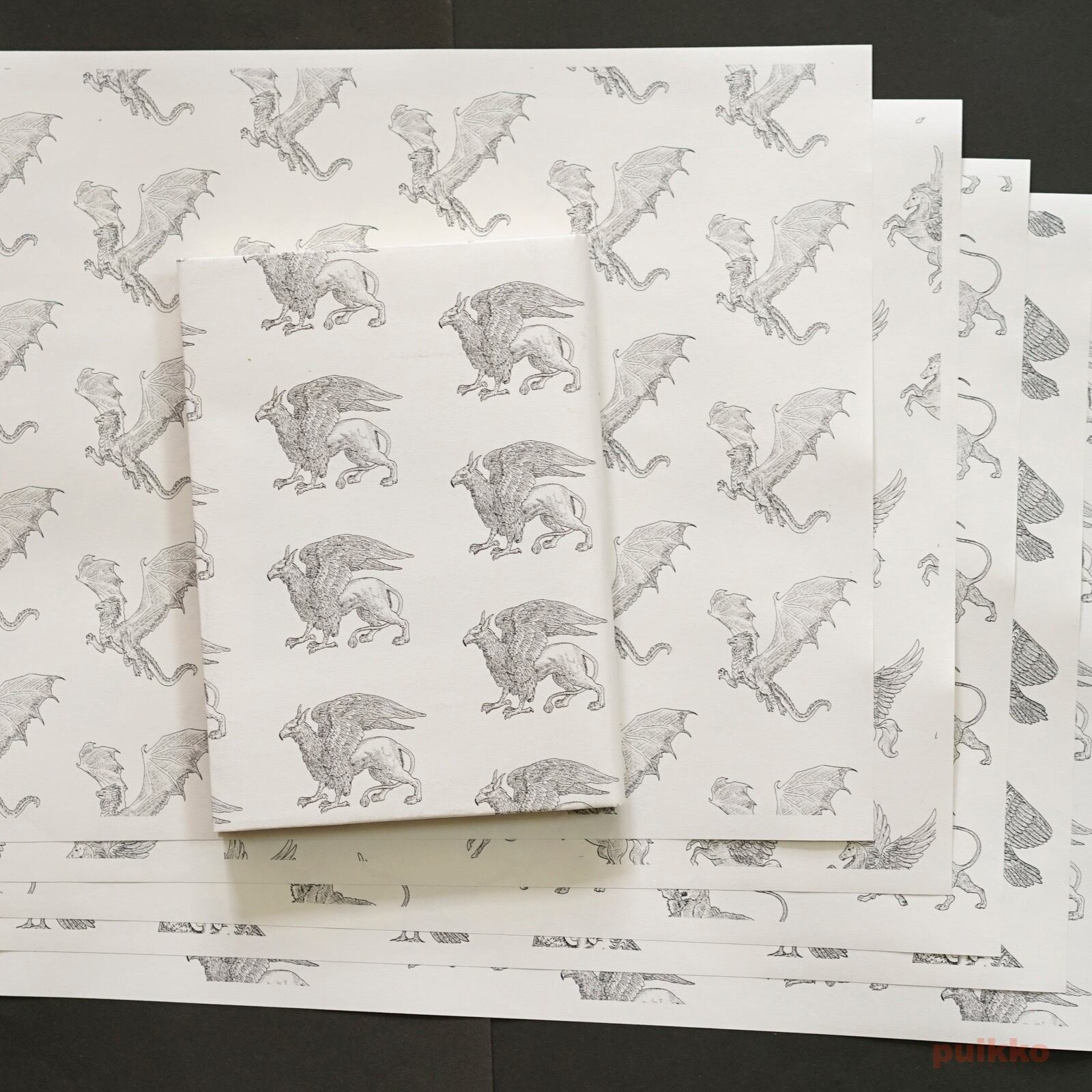 ドラゴンなど伝説の生物のイラストの紙製ブックカバーです。