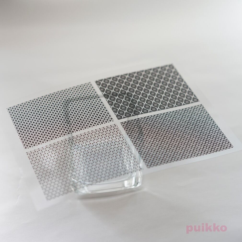 日本伝統の和柄パターン4種をOHPフィルムにモノクロで印刷しました。