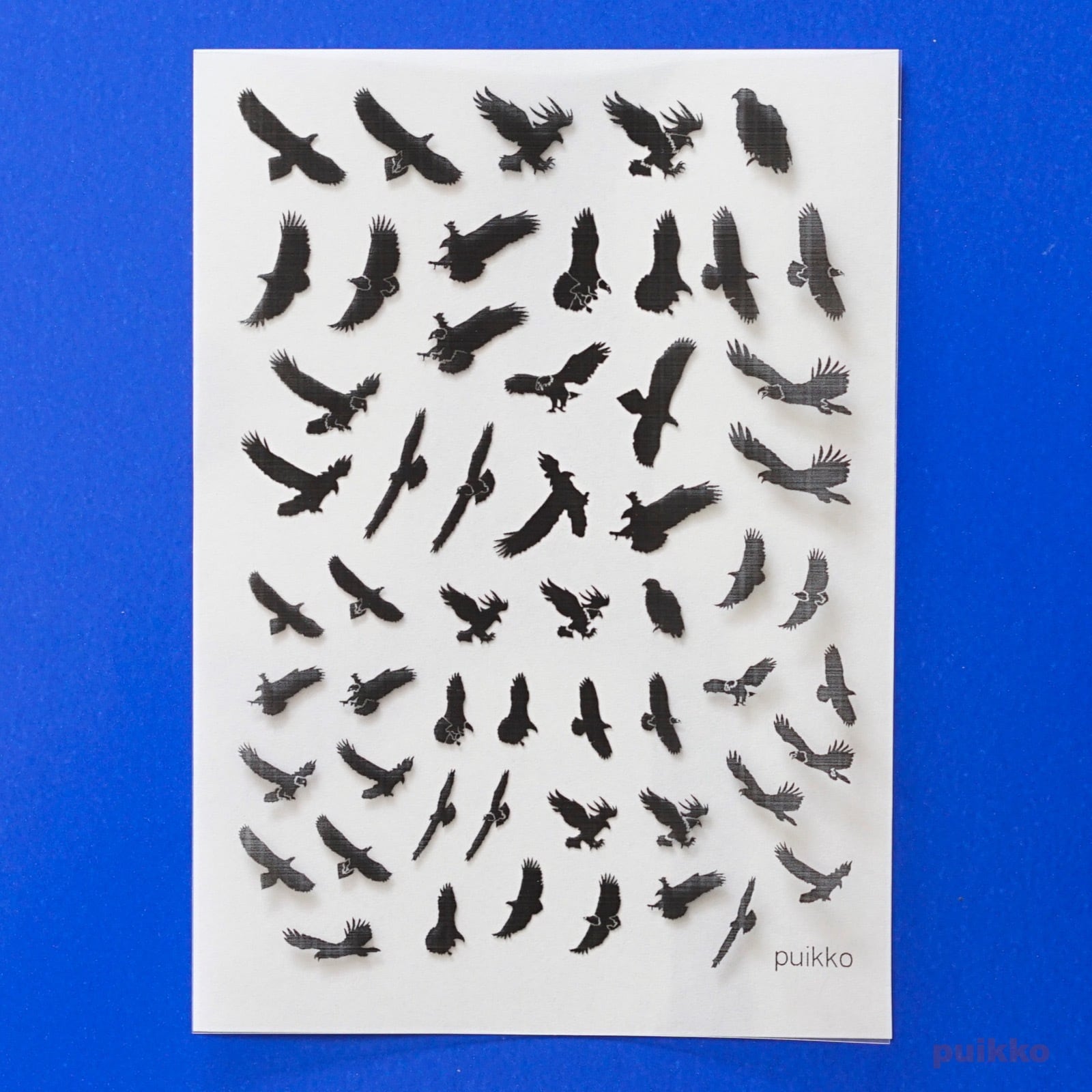 大きく羽を広げている鷲、獲物につかみかかろうとしている鷲など鷲のシルエットイラスト11種をサイズにバリエーションをつけて収録しました。