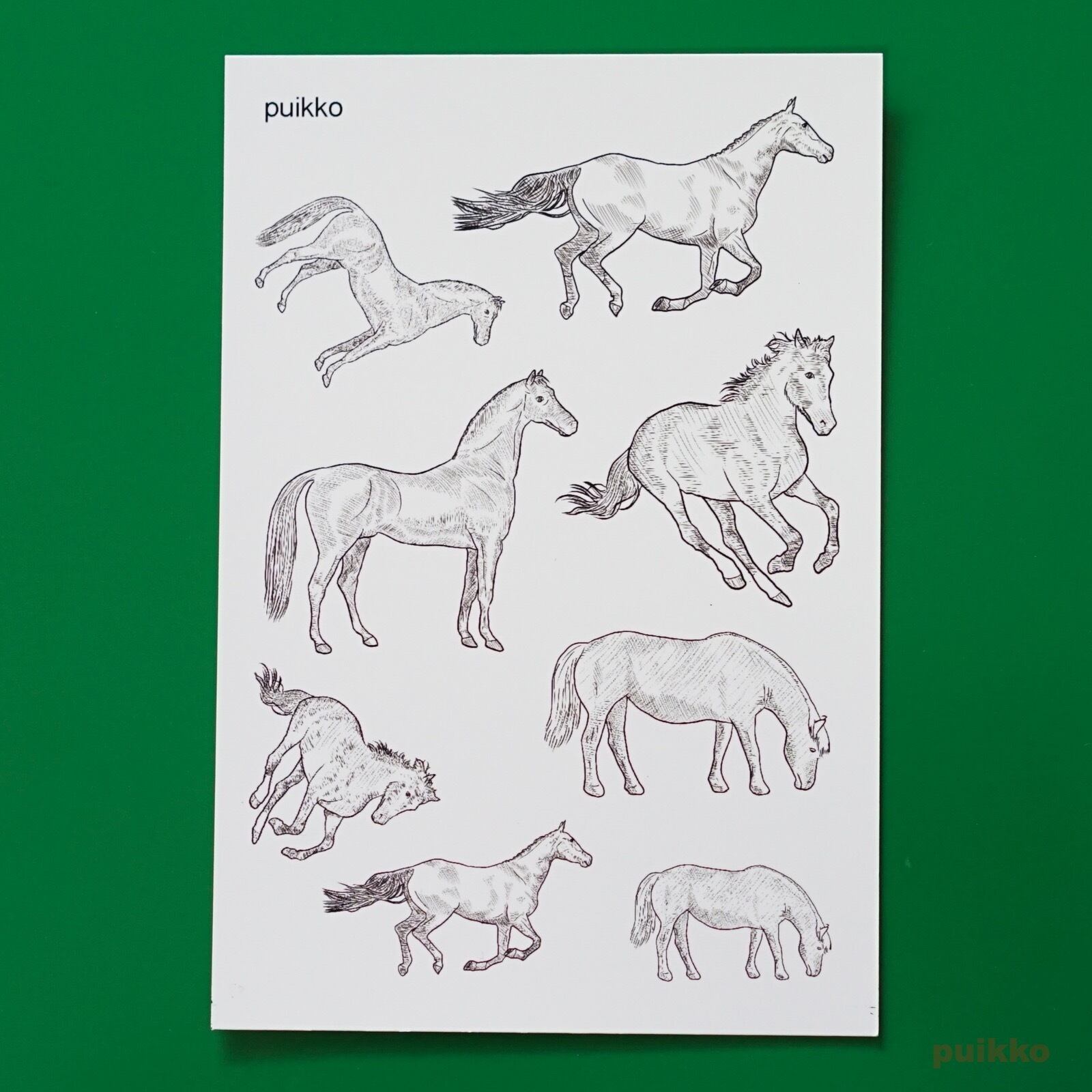 馬の線画イラスト4種をサイズにバリエーションをつけて収録しました。