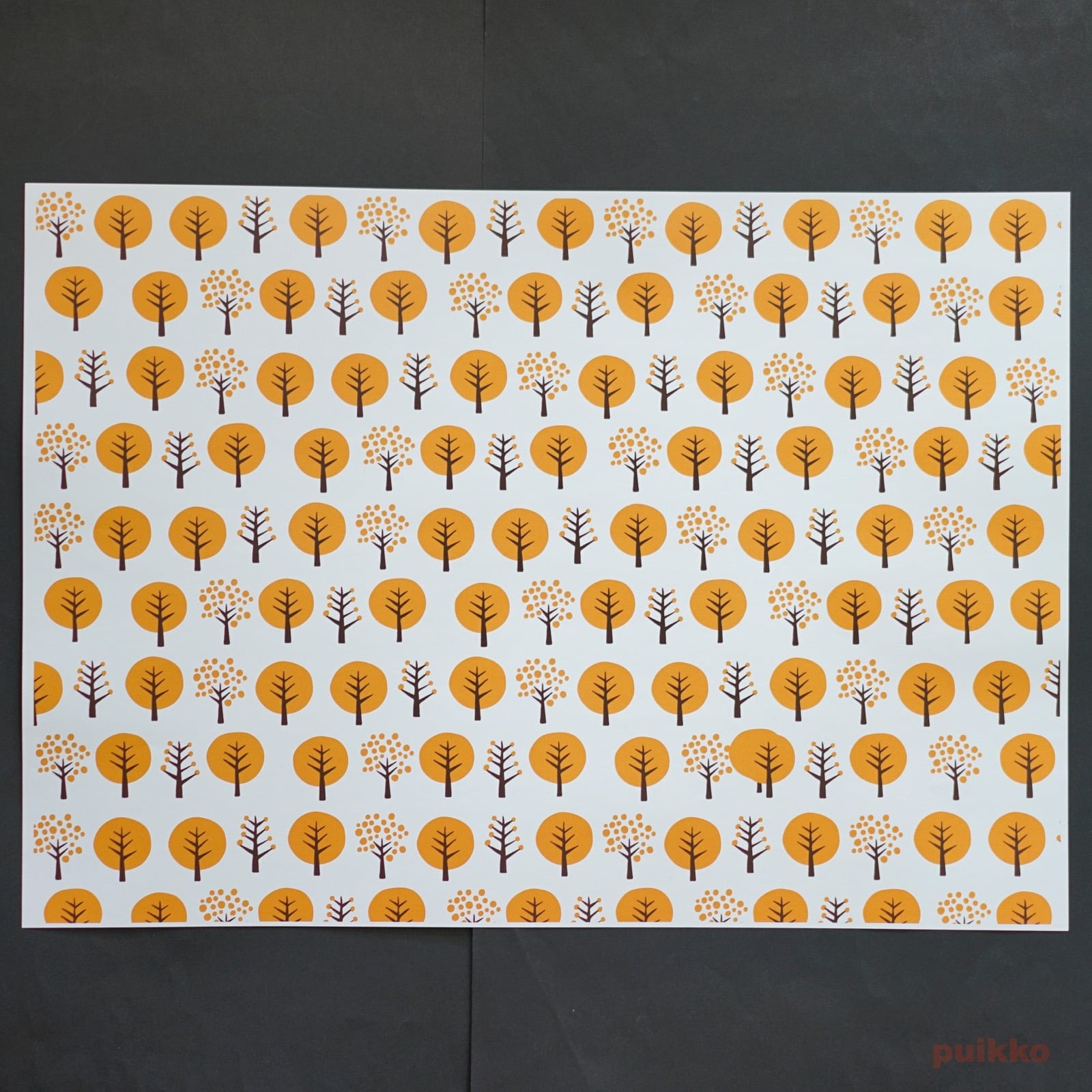 北欧デザイン風のパターン5種(鳥、花、花、リンゴ、木)をそれぞれ一面に敷き詰めました。