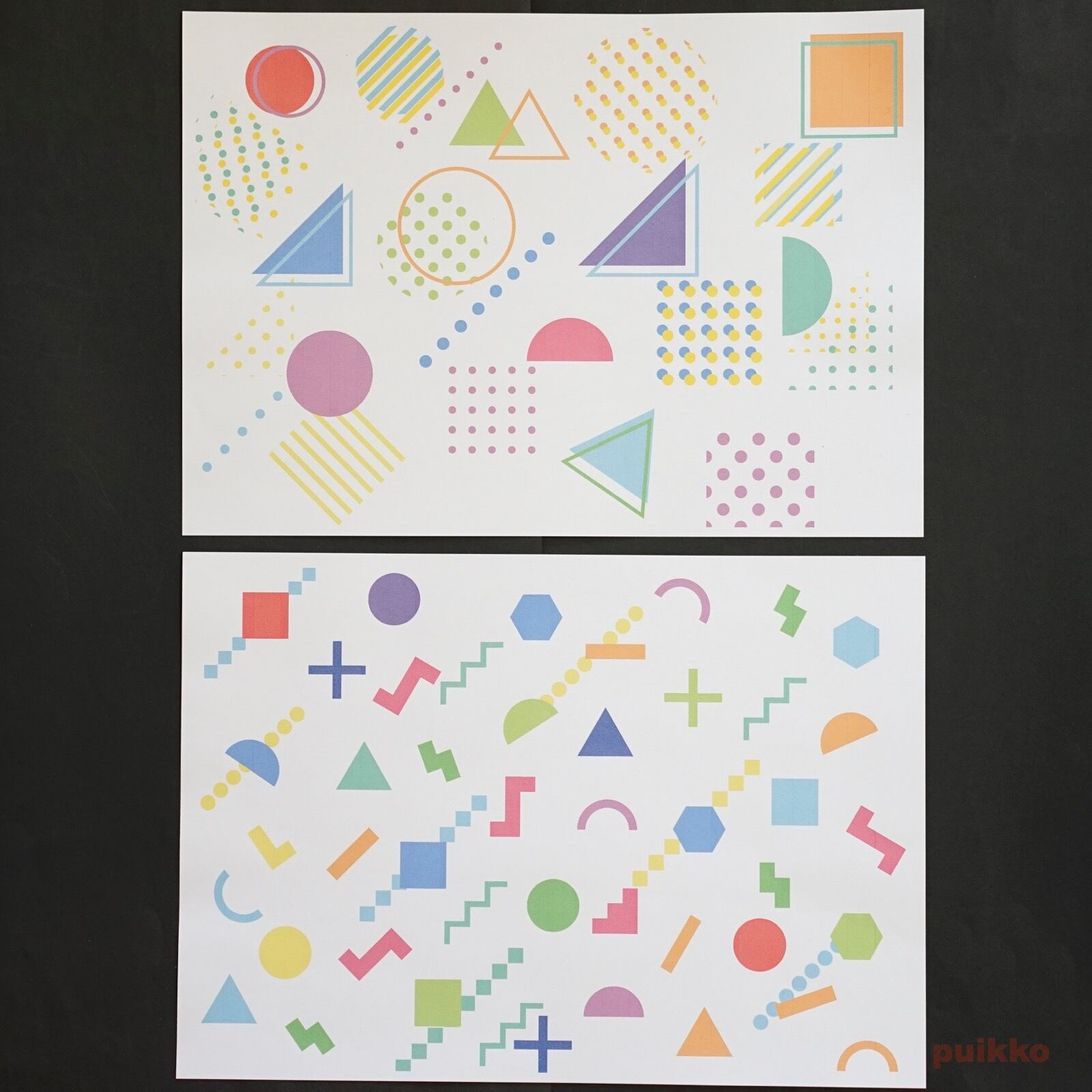 メンフィス柄は1980年代に流行した、幾何図形やラインを使いビビッドな配色を用いたポップなデザイン。このメンフィス柄によるオリジナルデザインのブックカバーです。