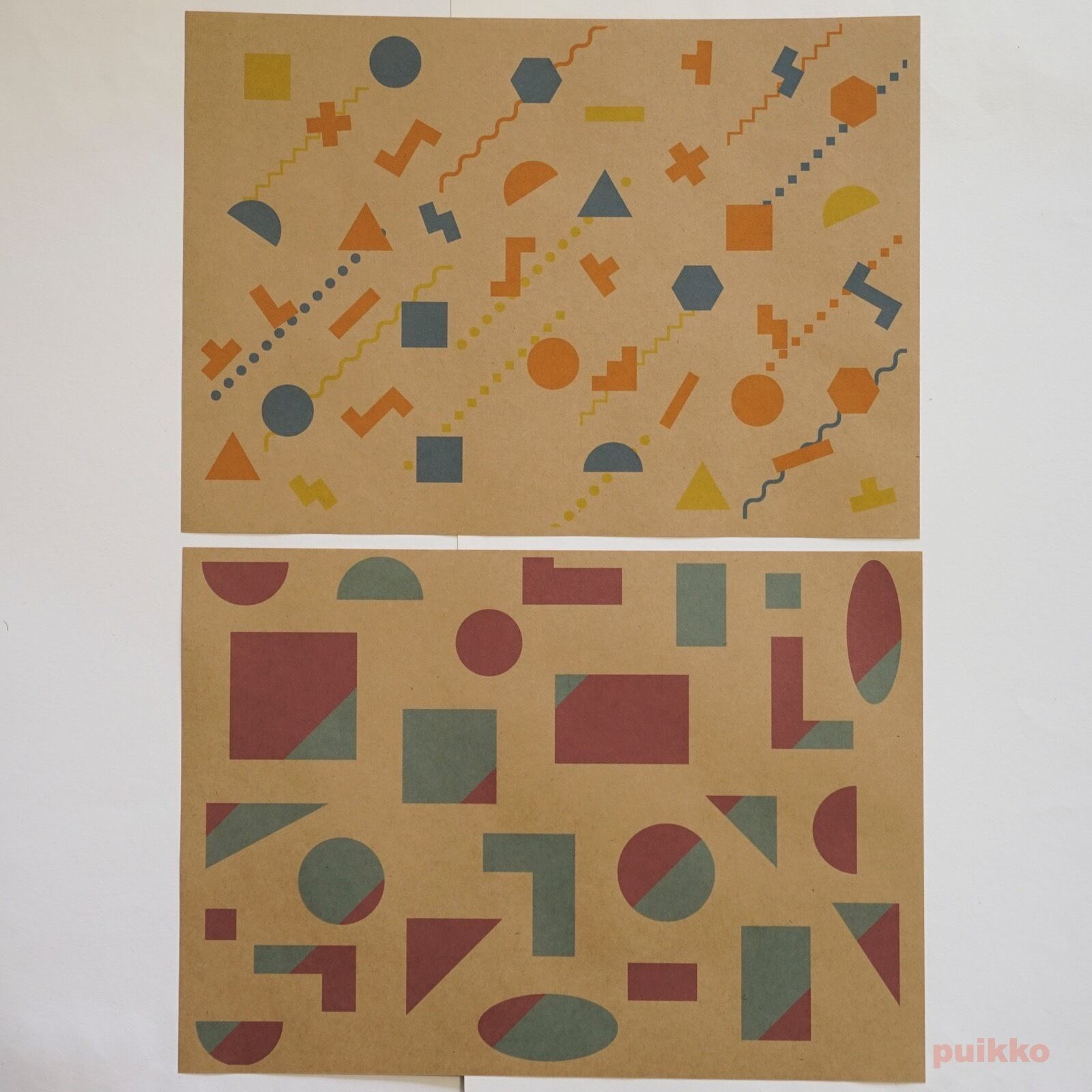 メンフィス柄は1980年代に流行した、幾何図形やラインを使いビビッドな配色を用いたポップなデザイン。このメンフィス柄によるオリジナルデザインのブックカバーです。「紙製ブックカバー メンフィス柄1」より色数を抑え、ツートーンまたはスリートーンでデザインしました。