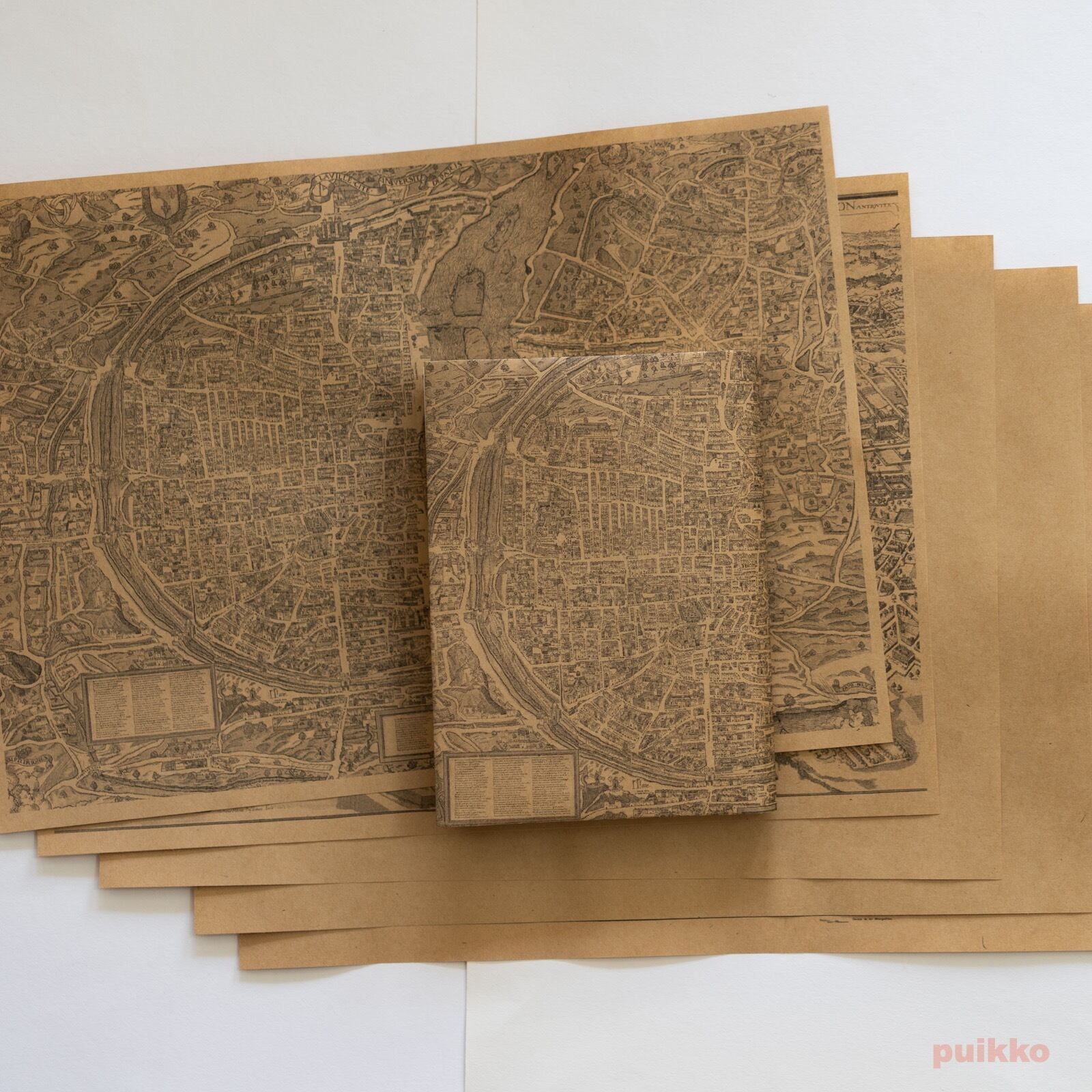 フランス パリの古地図5枚(1550年、1615年、1864年、1900年、1920年)をもとにブックカバーにしました。