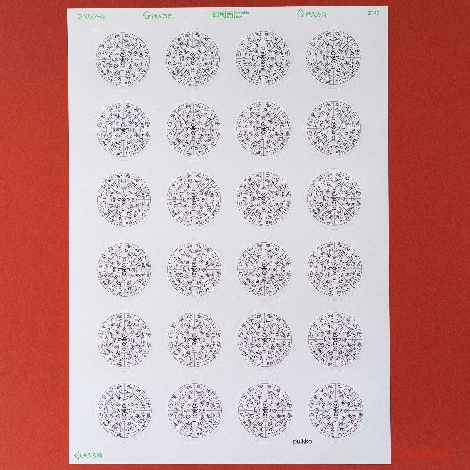 龍体文字のフトマニ図をラベルシール(直径40mmの丸シール)にモノクロ印刷しました。