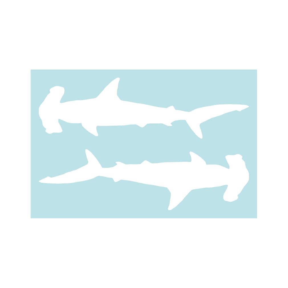 ハンマーのような独特な形の頭をもち、英名「ハンマーヘッドシャーク」とも呼ばれるシュモクザメのシルエットのステッカーです。