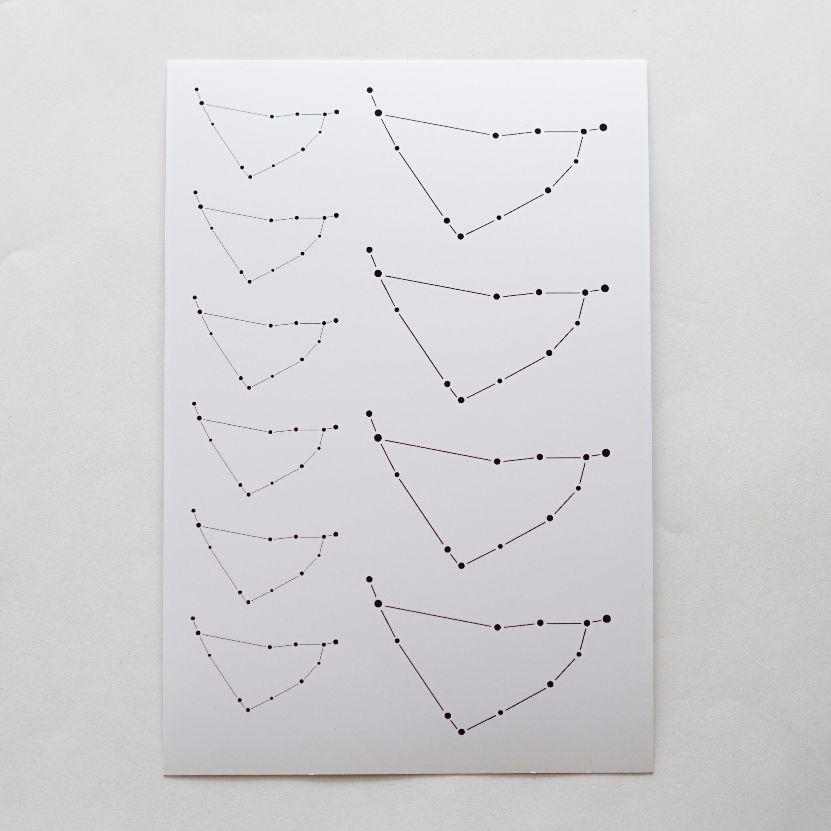 星座シリーズその10。やぎ座(山羊座)の星と星座線を描いた転写タトゥーシールです。
