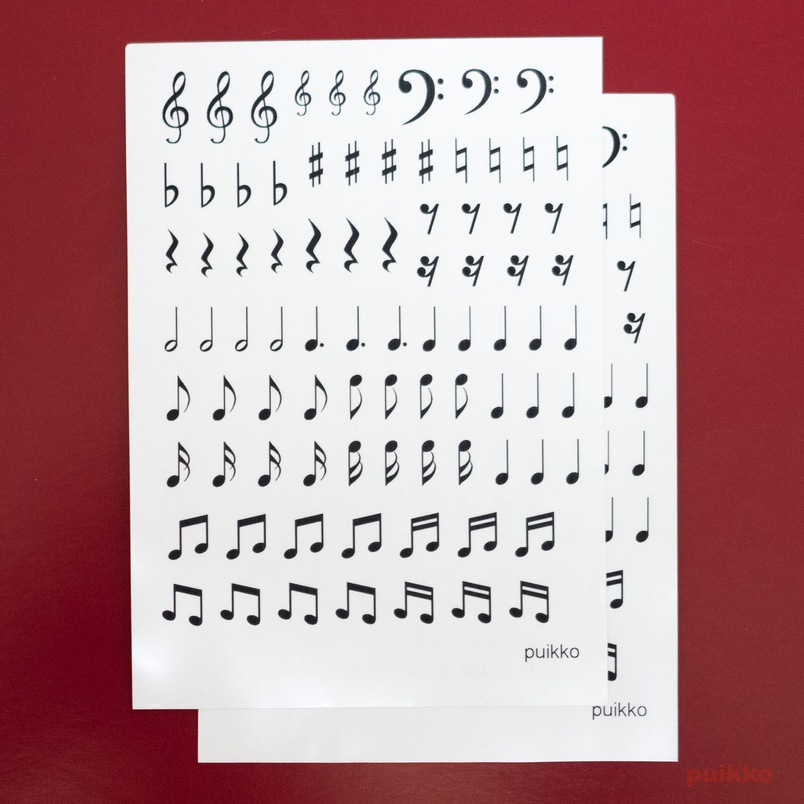 音符、休符と音楽記号のシールです。同じもの2枚のセットです。