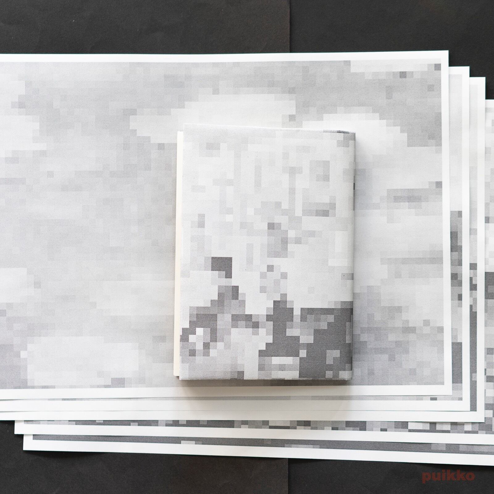 グレースケールのモザイク柄のブックカバーです。