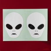 さまざまな宇宙人目撃例の中でも代表的なものが「グレイ」と呼ばれる、大きな頭と黒い大きな目をもつ宇宙人。このグレイの顔の絵柄をステッカーにしました。