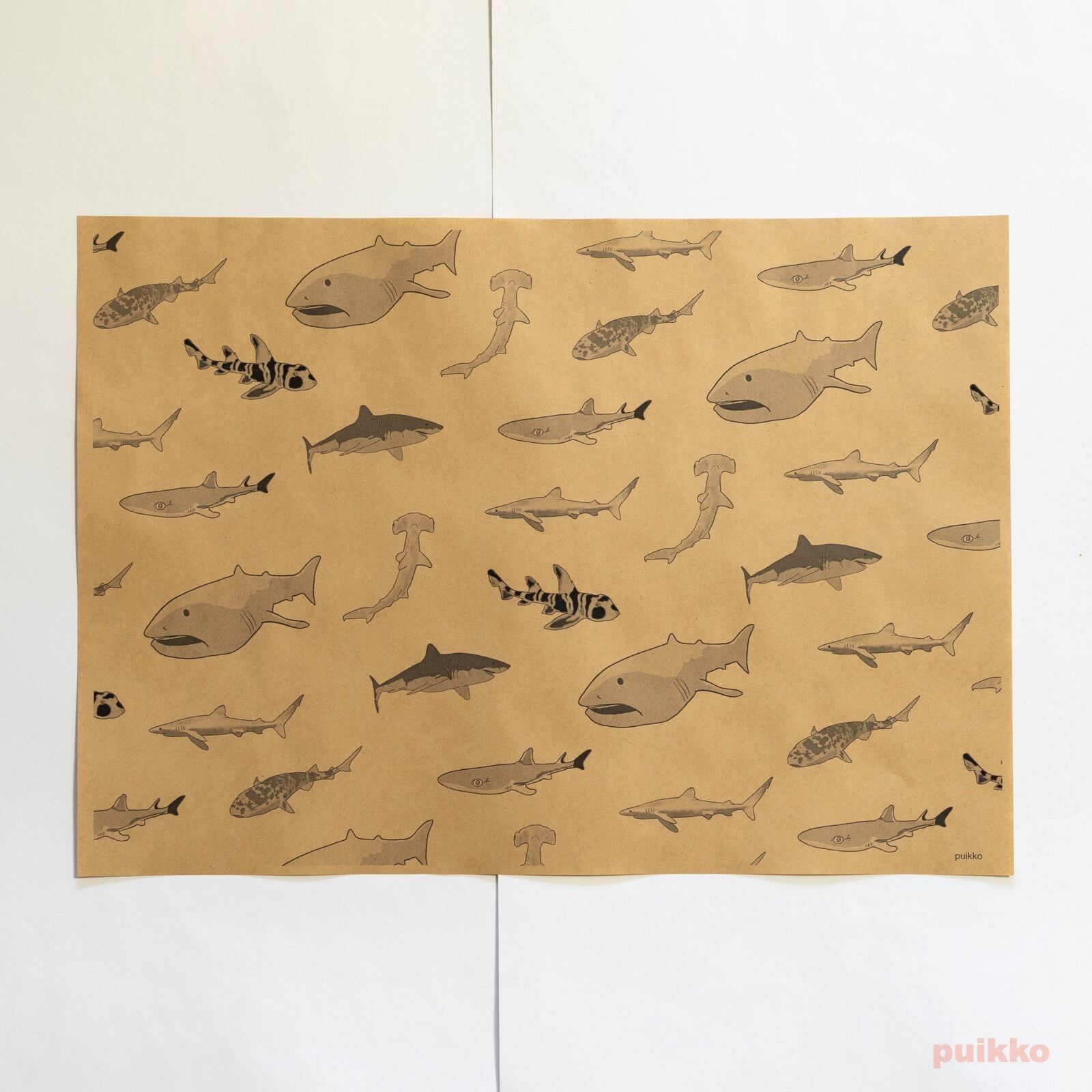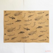 紙製ブックカバー サメ(モノクロ) A3判(5枚セット)
