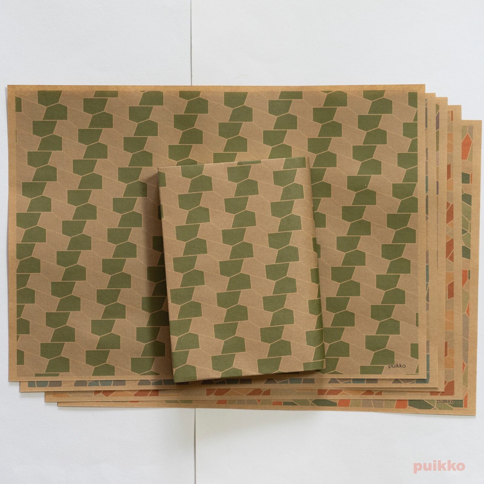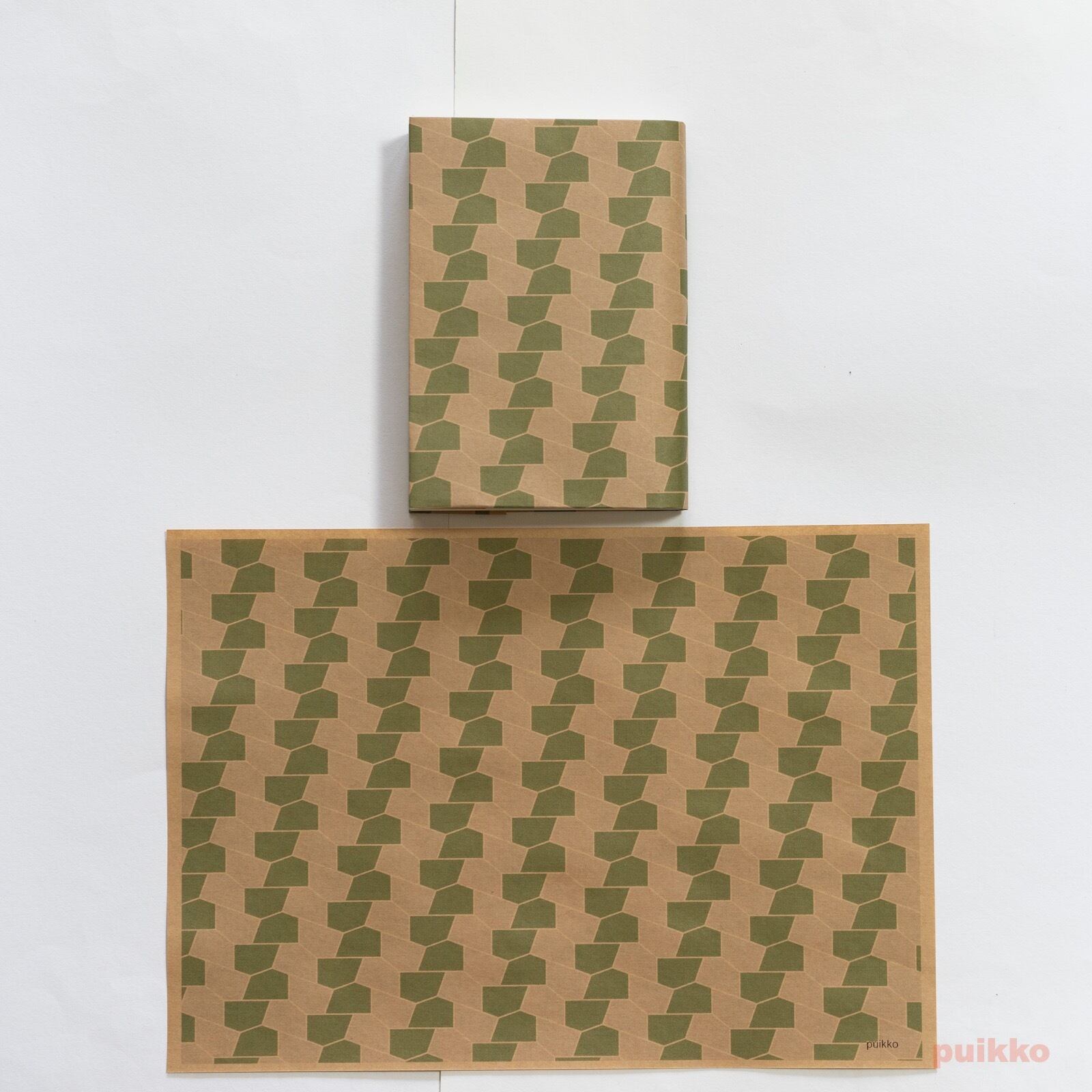 五角形のタイルを敷き詰めた絵柄の紙製ブックカバーです。
