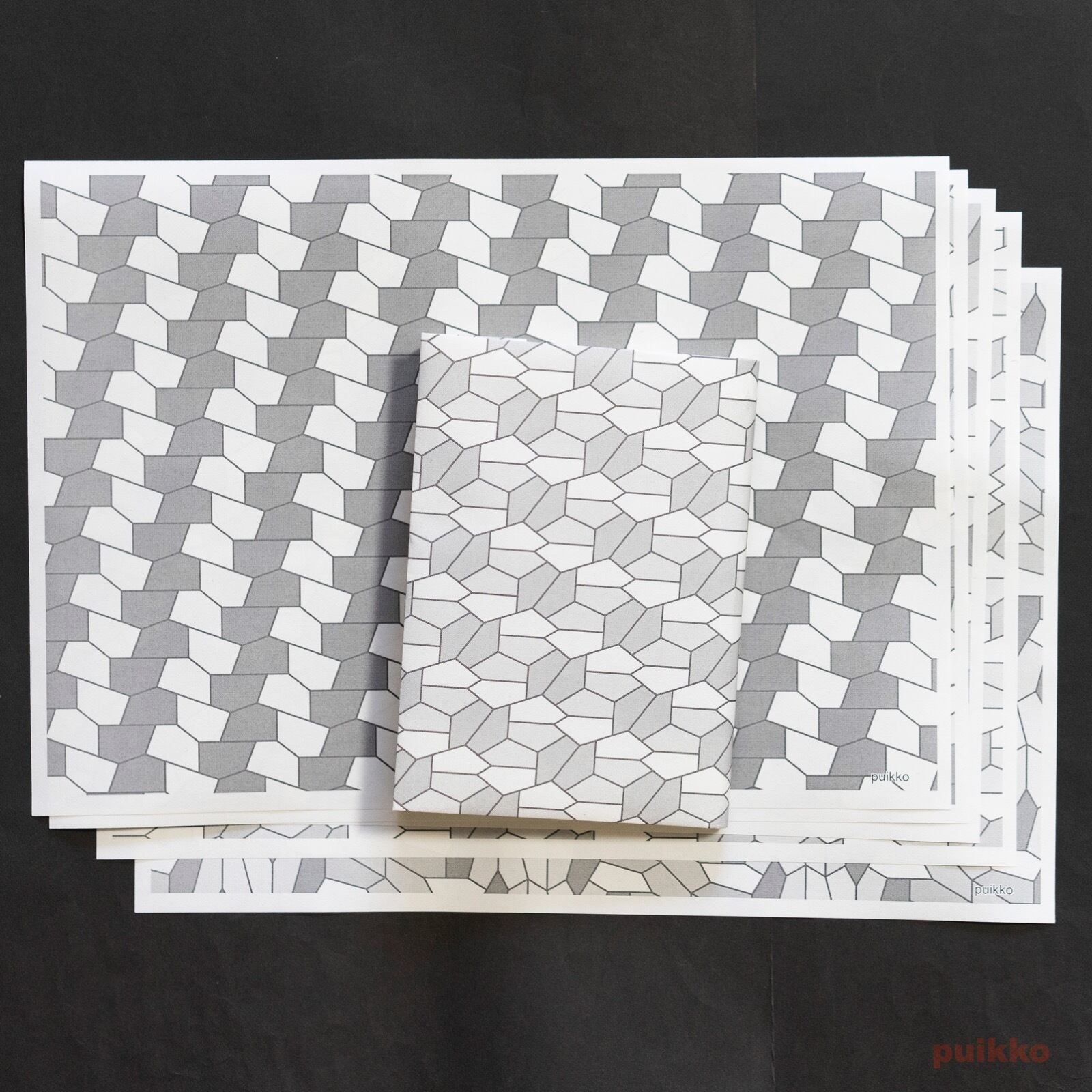 紙製ブックカバー 五角形のタイル(モノクロ)(5枚セット)