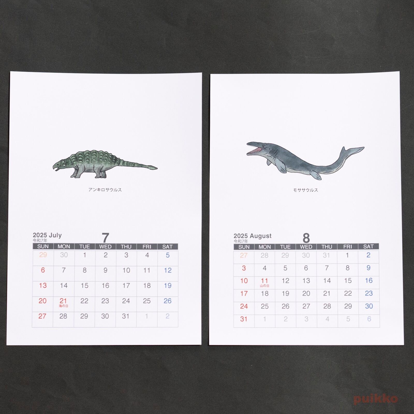 カレンダー 2025年 恐竜イラスト(A5判・壁掛けタイプ)