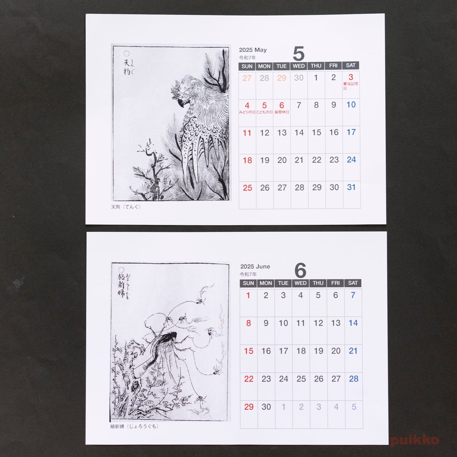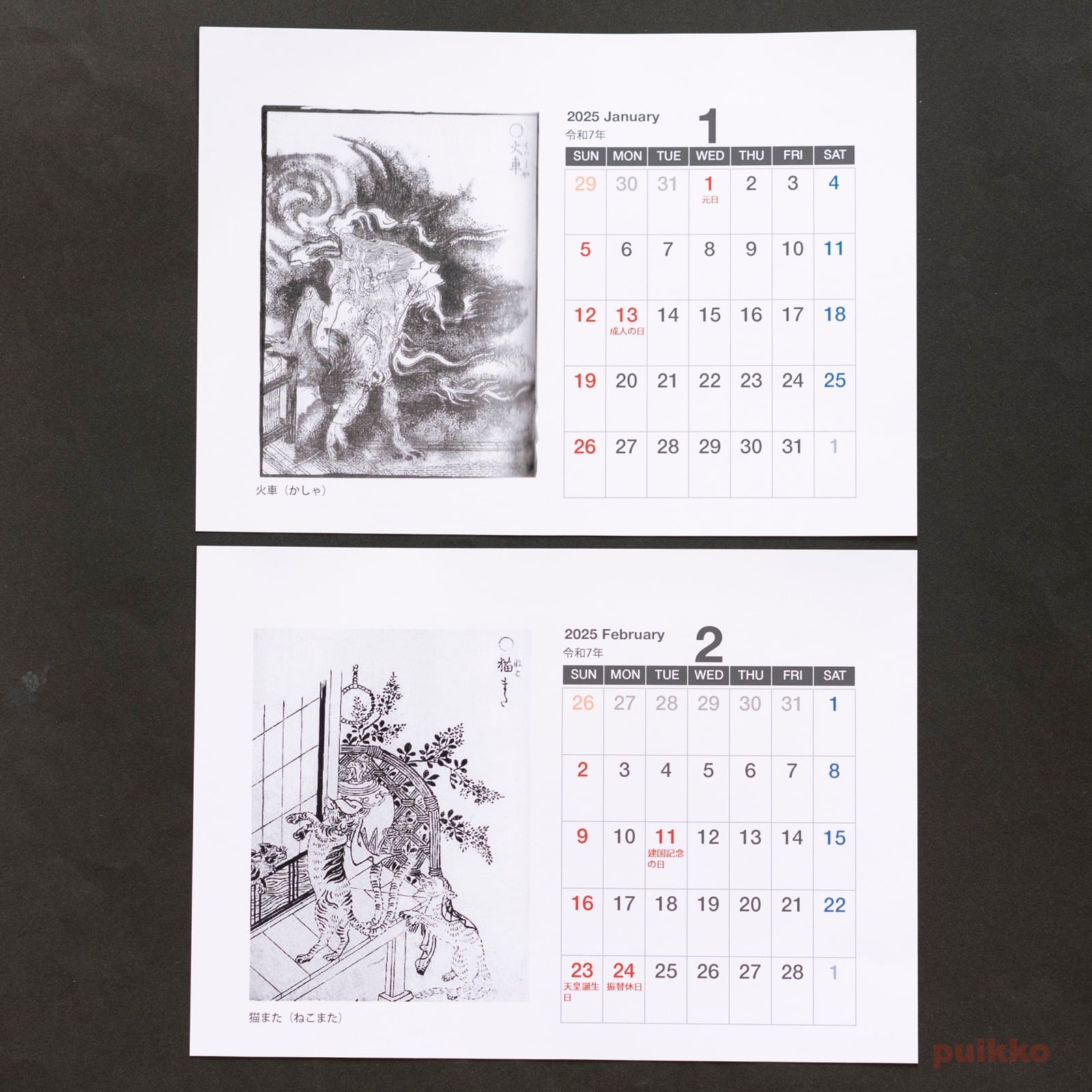 カレンダー 2025年 鳥山石燕「画図百鬼夜行」妖怪絵(A5判横・壁掛けタイプ)