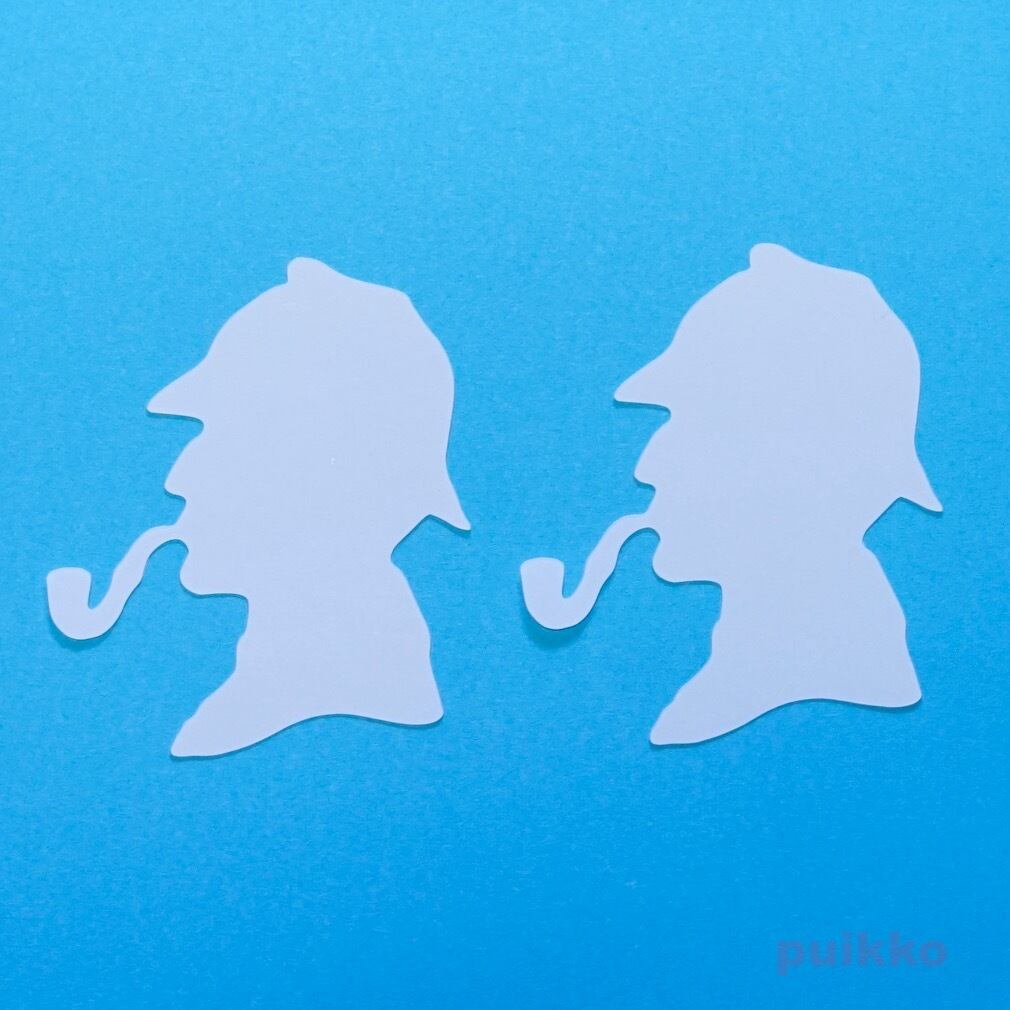 プラバンをシャーロック・ホームズの横顔のシルエットの形にカットしました。