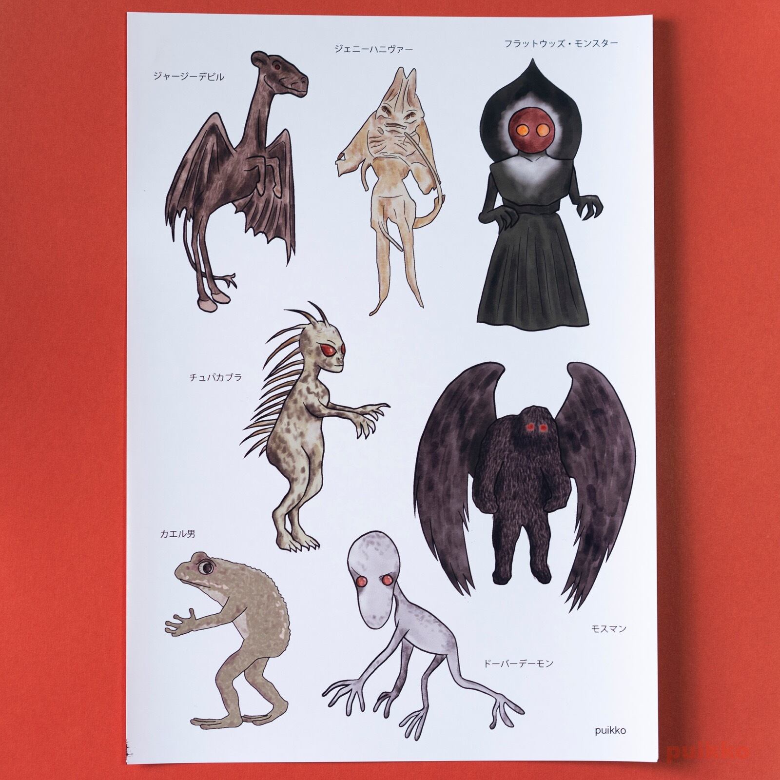 ジャージーデビル、ジェニーハニヴァー、フラットウッズ・モンスター、チュパカブラ、モスマン、カエル男、ドーバーデーモン