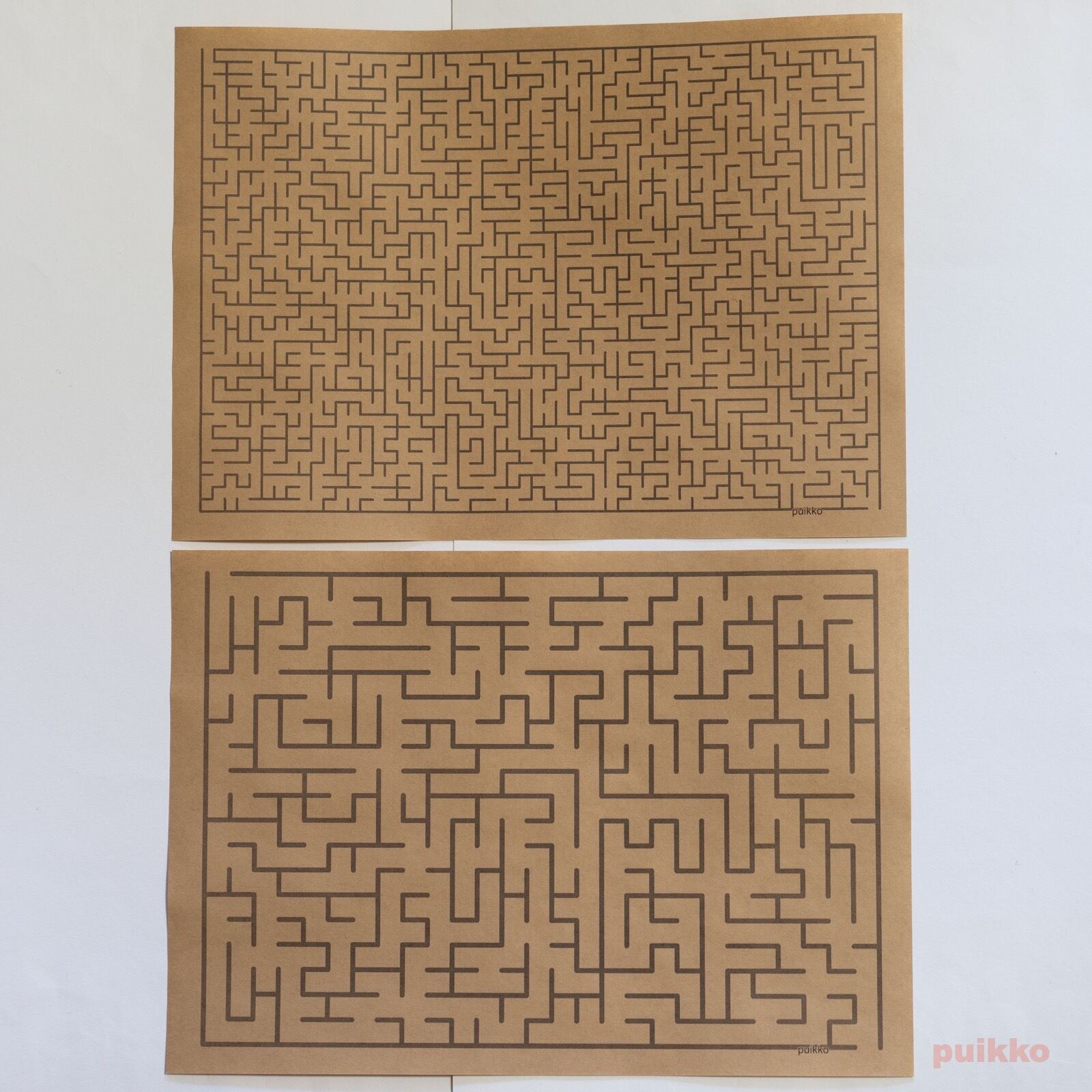 迷路(1、2枚めは縦38x横55マス、3〜5枚めは縦17x横27マス)の絵柄をブックカバーにしました。