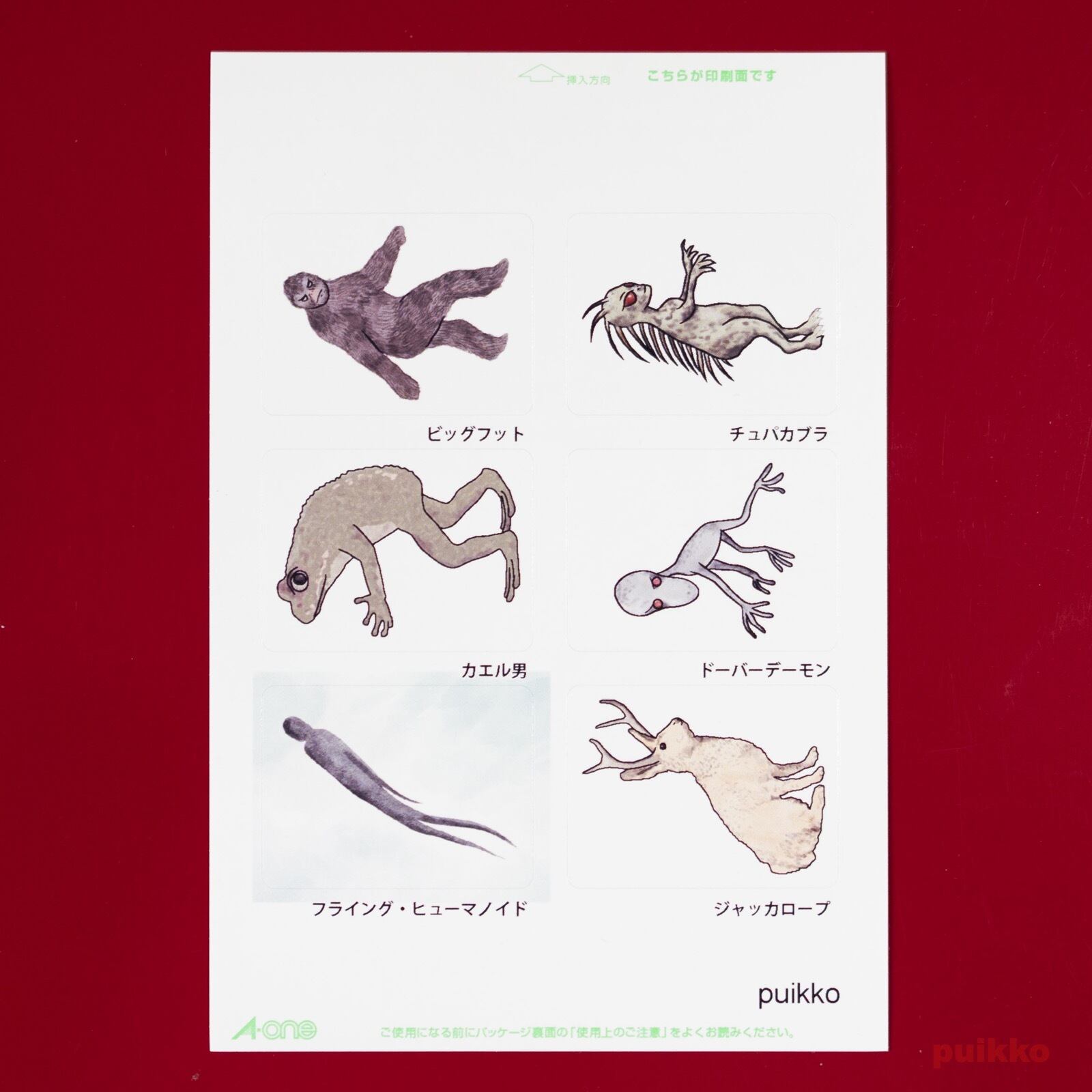UMA(未確認生物)のイラストをラベルシール(40×30mmの角シール)に印刷しました。