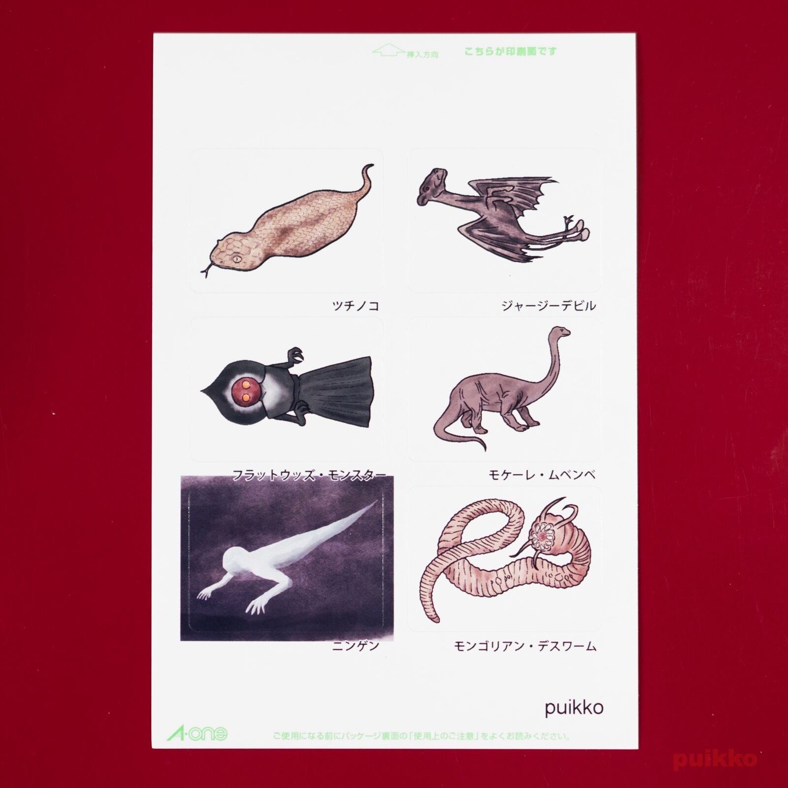 以下の有名なUMA(未確認生物)18種をイラストで描き、シールにしました。